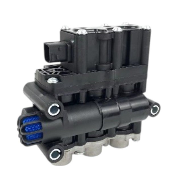Componente eletropneumático utilizado no controle da suspensão a ar. A eletroválvula de 3 vias com alimentação 24V permite o ajuste do nível da suspensão, garantindo conforto, estabilidade e melhor desempenho do veículo sob diferentes condições de carga e terreno.